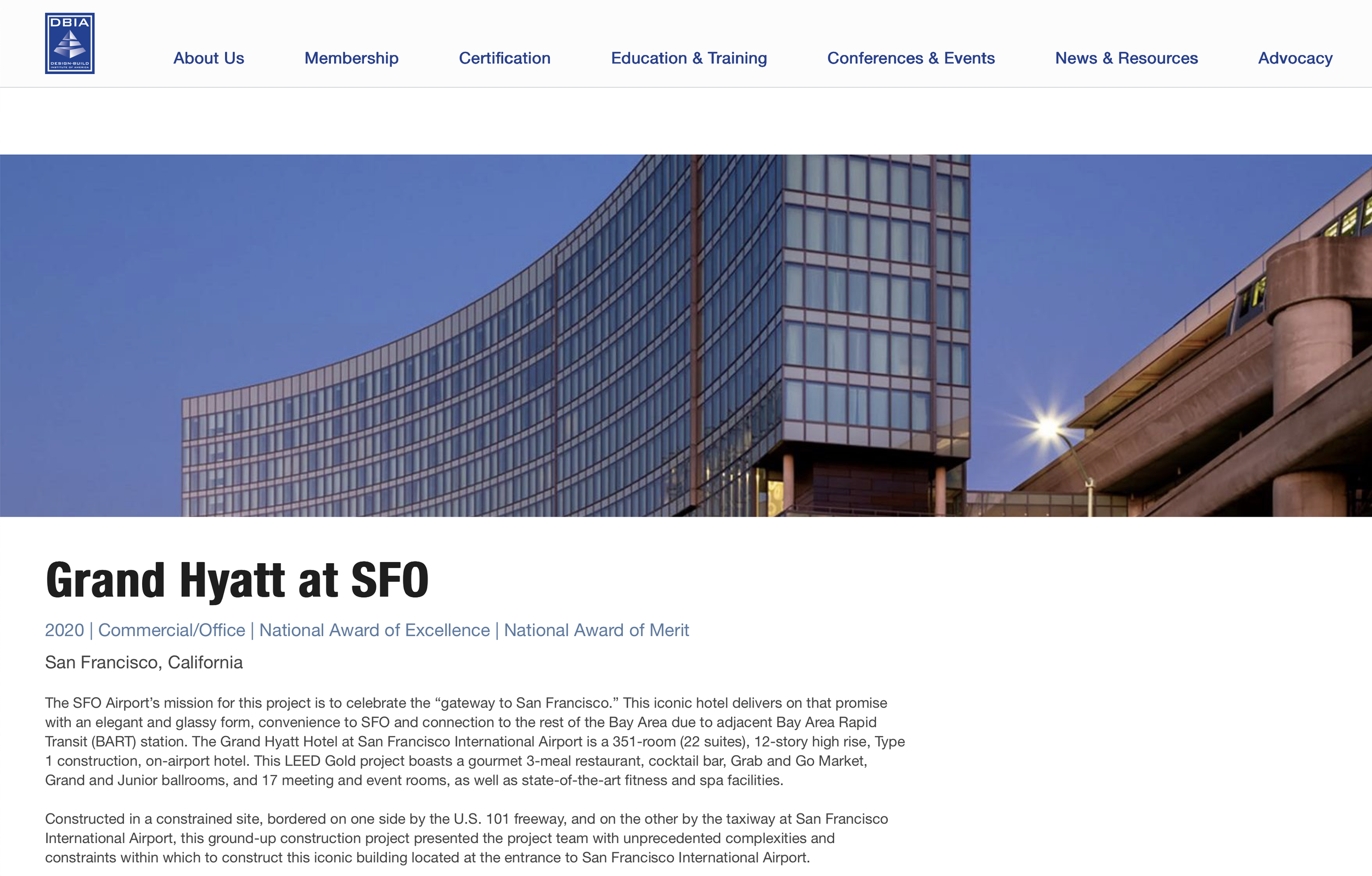 “The SFO Airport’s mission for this project is to celebrate the “gateway to San Francisco.” This iconic hotel delivers on that promise with an elegant and glassy form, convenience to SFO and connection to the rest of the Bay Area...”