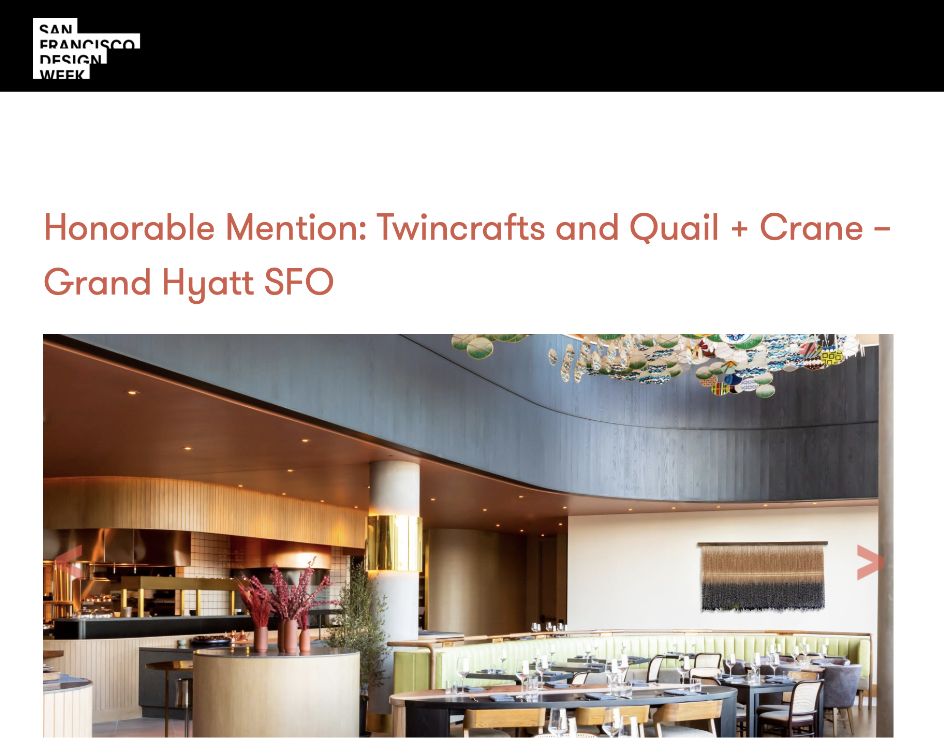Honorable Mention: Twincrafts and Quail + Crane – Grand Hyatt SFO