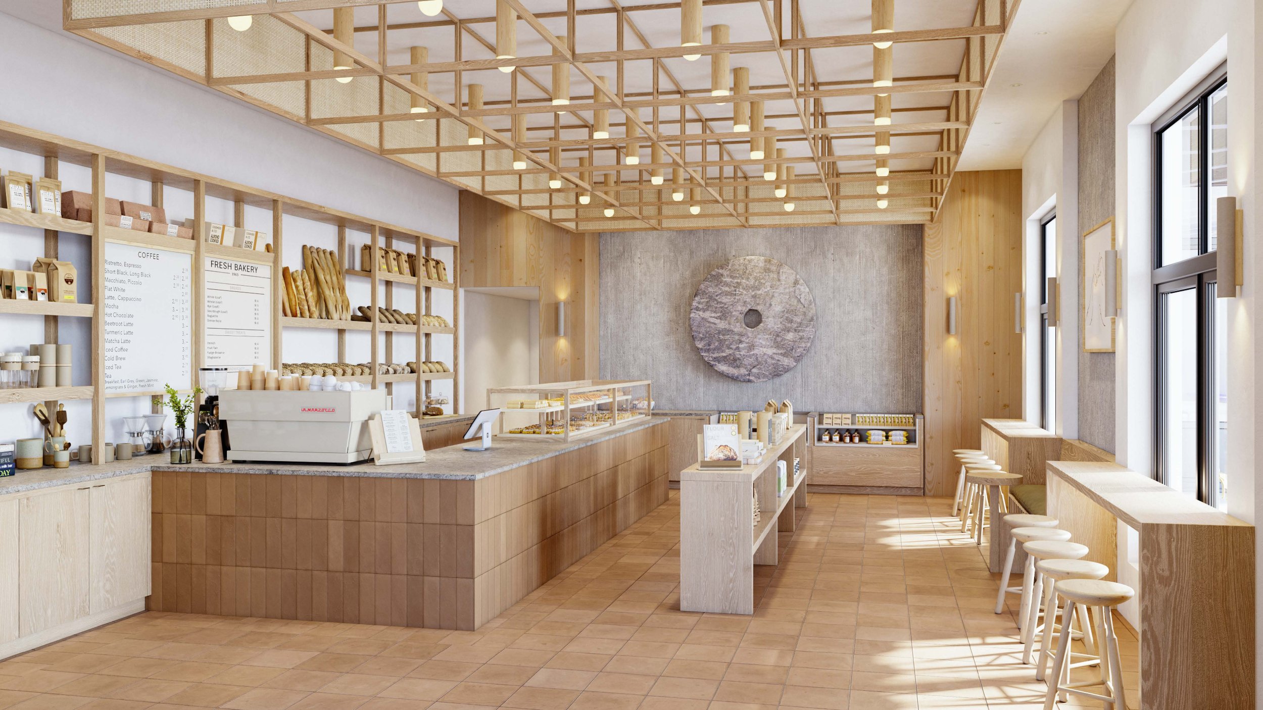 The interiors will be warm and have a modern interpretation of these hearty, honest structures and the graining process, where the foundation of any great baked good comes from. Visitor will flock to the village’s new heart to grab a warm croissant and crafted coffee on their way to slopes.
