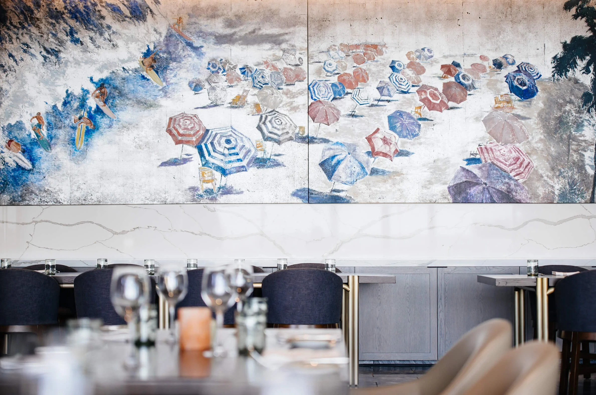 Part & Parcel marketplace offers up resort-grown herbs and honey, alongside a number of ingredient-focused, satisfying take away options. In addition to designing the two interior spaces, RoseBernard Studio created unique brand identities for five new F&B outlets: Aveo, Part & Parcel, Westwind Terrace, Sombra and 33N.