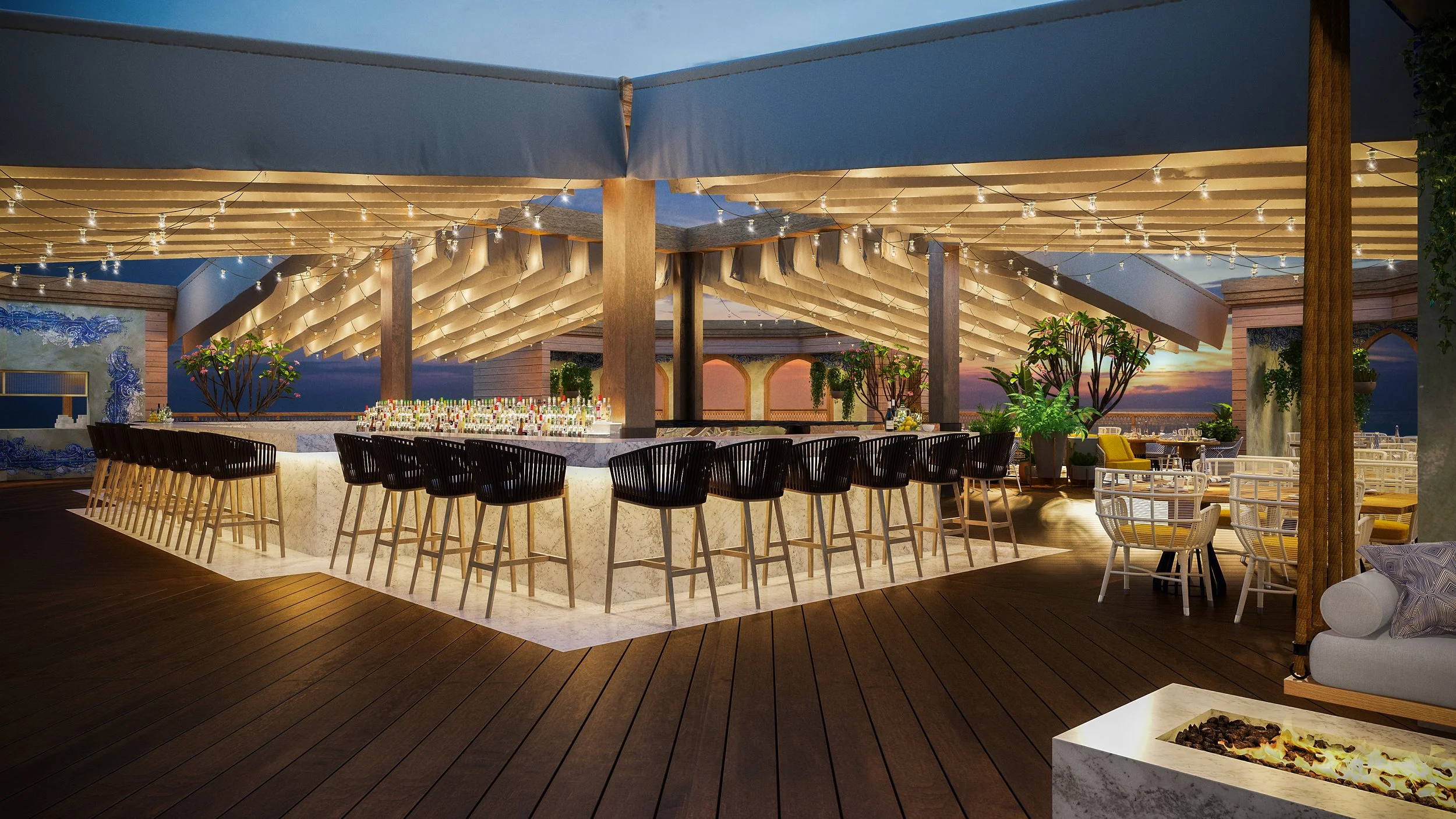 RoseBernard’s successful completion of a Market Study lead to the client asking us to further our services. This contemporary Portuguese restaurant will be the newest addition to this resort’s 5-star experience. Situated at the end of a pier, the design, tabletop and uniform directions incorporate nautical refrains inspired by Lisbon and its neighboring seaside towns, answering to market expectations.